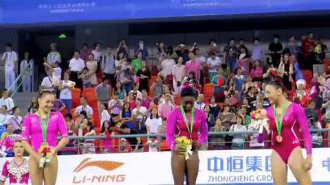 Imagine being the literal best gymnast in the world and have a bee disrupt your actual crowning ceremony. Cannot relate.